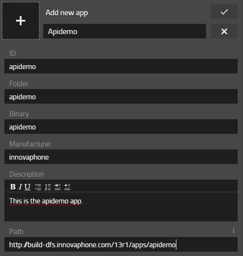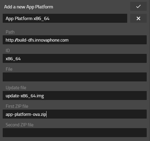 The Path should point to where the folder called "app-platform" is placed, which contains the builds for the given app platform. The ID must be unique and the fields File, Update file, First ZIP file and second ZIP file can be used to specify which files must be uploaded for the given app platform.